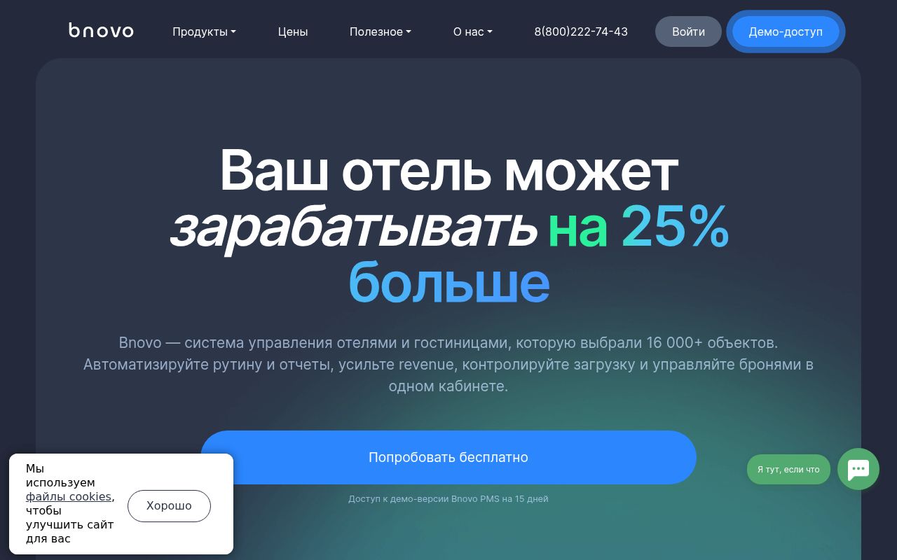 Bnovo — это «золотой стандарт» для малого и среднего гостиничного бизнеса в России. Отличное соотношение цены и функциональности, мощные инструменты для роста выручки и стабильная работа делают её одним из лидеров рынка.