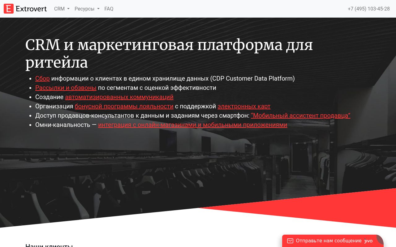 Переход на Extrovert CRM будет наиболее оправдан для сетей магазинов одежды, обуви, бутиков и других розничных точек, где важно удерживать клиента и повышать LTV через качественный сервис и персонализированные предложения.