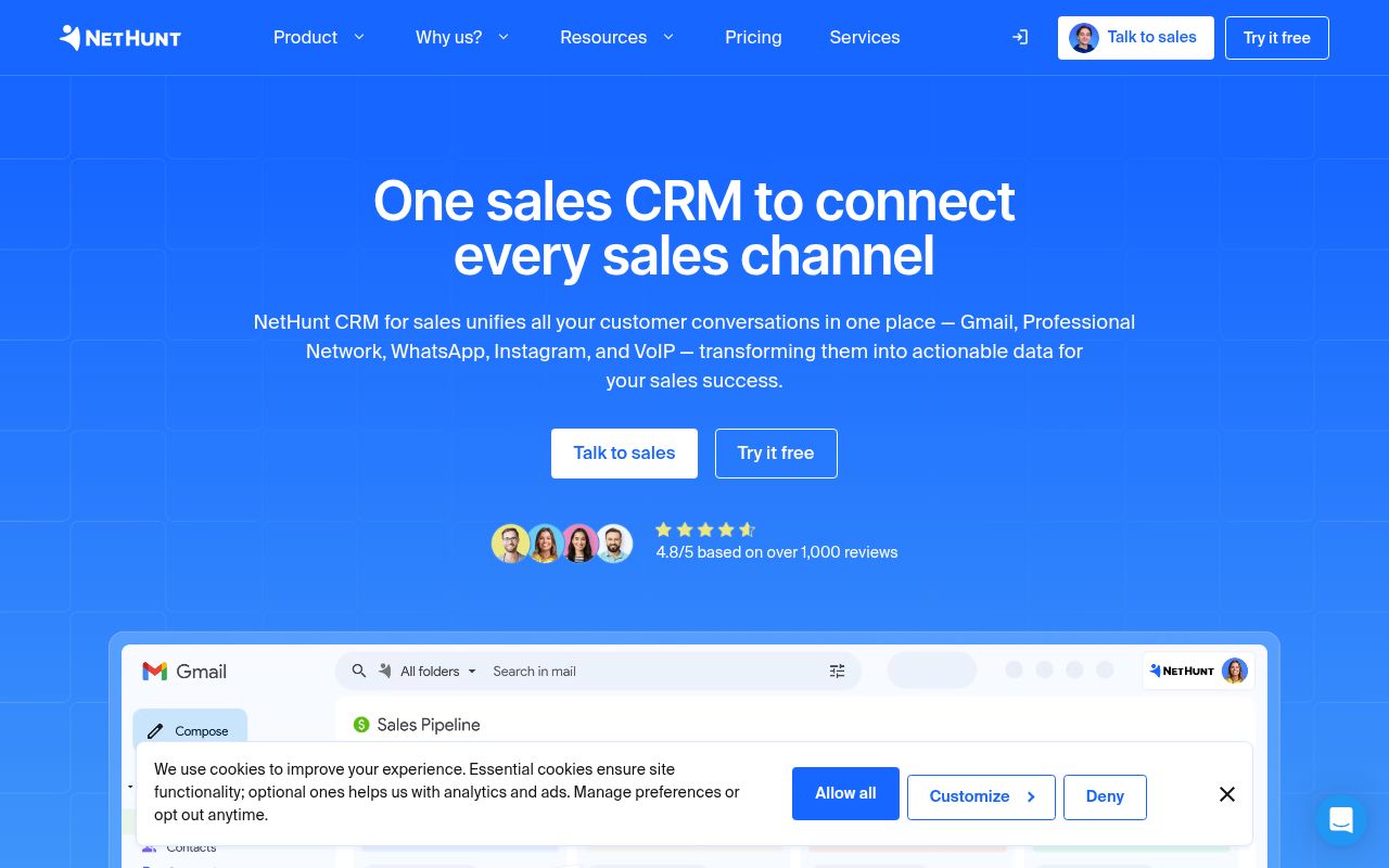 Сервис занимает уникальную нишу «Inbox CRM» и идеально подходит для малого и среднего бизнеса, стартапов и агентств, чья коммуникация плотно завязана на экосистеме Google. NetHunt CRM выделяется на фоне конкурентов бесшовной интеграцией: пользователи могут создавать записи CRM из входящих писем в один клик и видеть контекст сделки прямо в переписке.
