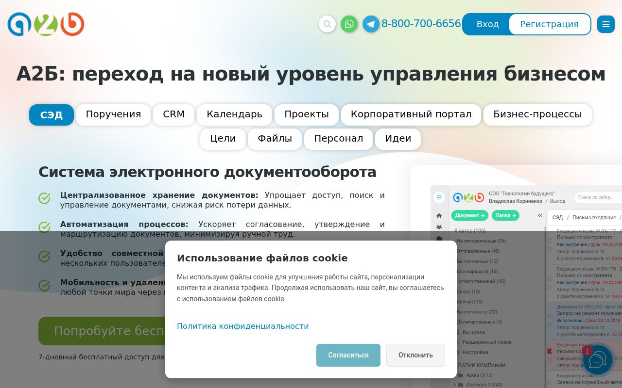 А2Б разработана как комплексный ответ на этот тренд, предлагая модульную архитектуру, где СЭД, CRM, управление проектами и корпоративный портал работают в единой связке. Это позволяет исключить дублирование данных и обеспечить сквозной контроль над всеми бизнес-процессами организации.