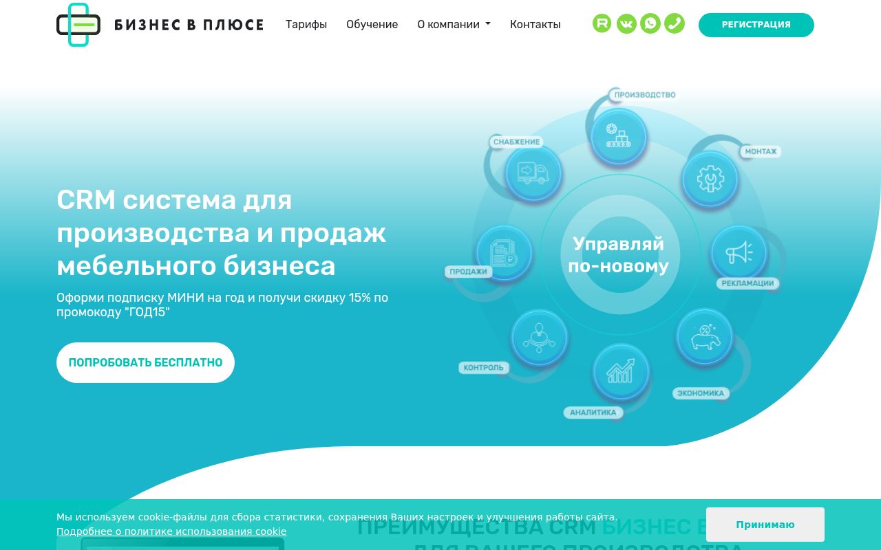 «Бизнес в плюсе» разработан как единая экосистема, объединяющая продажи, производство, снабжение и финансы в одном окне. Это не просто CRM, а полноценная ERP-система, созданная с глубоким пониманием специфики мебельной отрасли, позволяющая автоматизировать весь цикл от первого звонка до монтажа и расчета зарплат сотрудников.